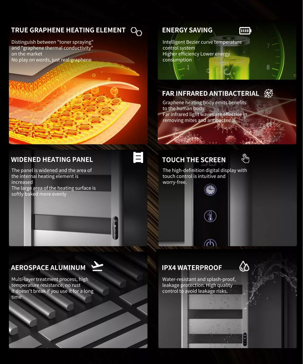• 135W الجرافين رف المناشف الكهربائية135W الجرافين رف المناشف الكهربائية